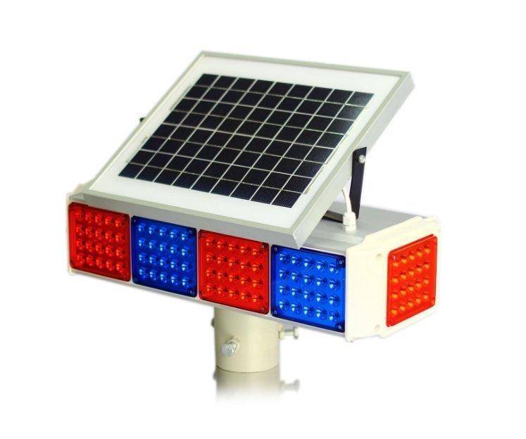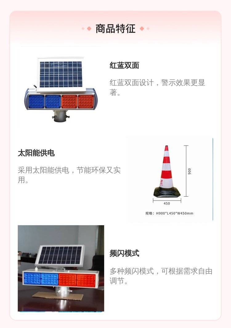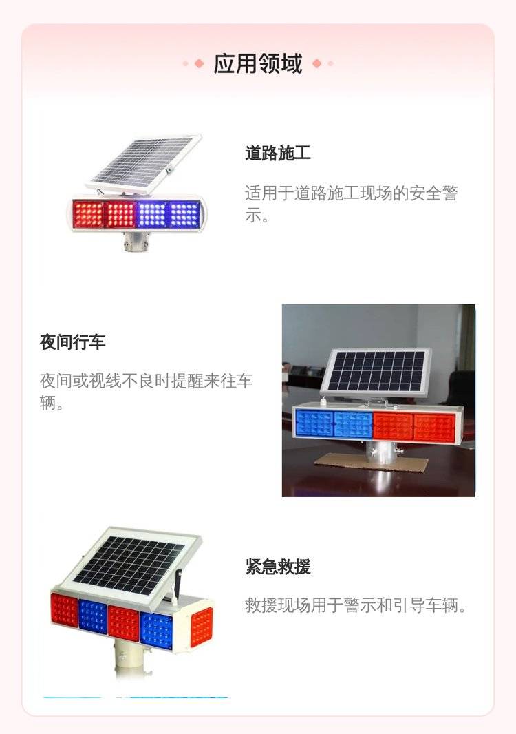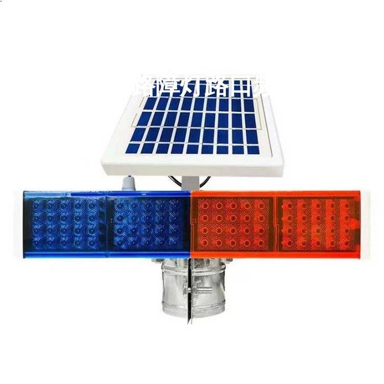 太阳能爆闪灯交通安全警示灯红蓝双面路障灯路口频闪灯